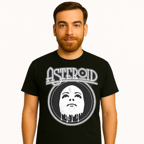 A black T-shirt featuring a graphic print of the band Asteroid's face.