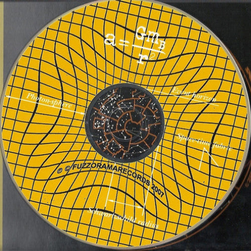 Album cover with text listing various tracks on a black, yellow, and orange background