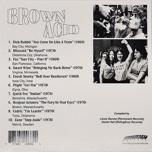 There is NO LIGHT at the end of this tunnel! BROWN ACID: The Nineteenth Trip fires ten more savage nails deep into the coffin of ‘60s psychedelic idealism. This series is THE premier top dog journey into the rarest and most wasted early local eruptions of heavy rock, unleashed at a time when harsh reality, human nature and disillusionment drove prevailing underground rock glimpses of a ‘better’ world into ever darker selfabsorbed comedowns. Mind expanding ’60s love energies transform into toxic aggression right before your ears! The great thing is that these moves are totally justified, ‘we are all one’ is cosmically good in theory but ‘get it while you can’ ends up perhaps better advice in the light of human history. Both of those angles of awareness can coexist, some of these bands deliver unrelenting sideways positive energy but they aren’t over-thinking it, they are youthfully driven by hunger for life and satisfying the undeniable urges their DNA thrusts upon them. Sonically, the results in the BROWN ACID series never fail to breathe hot and heavy, the guitars kill it every time, the variety of approaches these tracks take keep the scenery shifting into new places. The key element that makes this stuff so potent is that THEY (the bands) are in control. Captured genuinely with no compromise, right out of the gate. No doubt they had ambition with high hopes for the future when they laid down these primal efforts, the fact that they captured their energy so vividly at a moment in time when the only direction imaginable was UP creates a hard hitting life affirming subtext to the proceedings. That is the core energy of blues and rock and roll, dealing with the struggles of existence by flipping a gigantic ‘what the fuck’ high energy bird right in the face of the moronic defective reality these bands were born into. If you take this stuff too ‘seriously’ you are utterly missing the point, it is beyond analysis, it is life itself! No amount of thinking will get you there quicker! BROWN ACID: The Nineteenth Trip is scary… the bottomless pit of deranged vintage heavy rock the series presents continually expands over time… one deadly dose too many and you might be trapped in the bad trip loop forever… enjoy it or lose your mind!