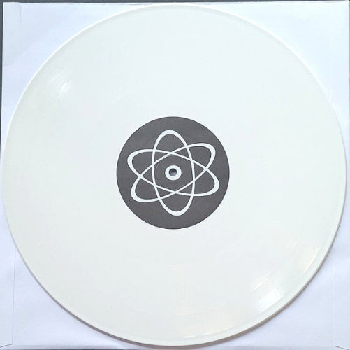 Black silhouette of a figure with multiple arms and a central atom symbol on a white background
