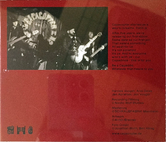 Capacopter stand for heavy, straight-up stoner rock: roaring amps, orange tolex, deep-tuned guitars and drums that hit hard. Their sound fuses the relentless rock of the ’70s with modern, detail-driven songwriting - packed with gripping hooks and massive riffs.