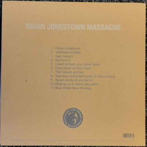 Back cover of a vinyl record with tracklist and band name 'Brian Jonestown Massacre' on a brown background.