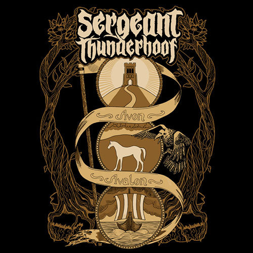 Decorative emblem with 'Sergeant Thunderhoof' text and various symbols on a black background