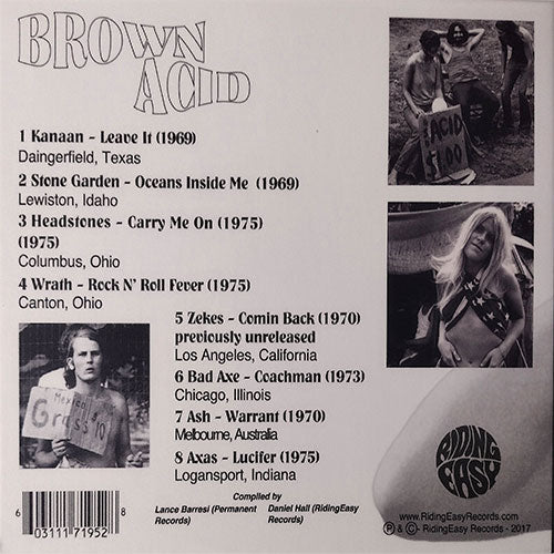If you thought we were getting close to the end of the Brown Acid series with our last Trip, you were dead wrong…we’re only just getting rolling. The well of privately released hard rock, heavy psych, and proto-metal 45s is deep and we are nowhere near tapped out. Most of these records were barely released and never properly distributed so they ain’t easy to find, but they’re out there if you’re willing to dig…and we aren’t afraid to get our hands dirty. Hard calluses have formed from handling the shovel and we’ve sifted through a lot of dirt, but we’ve dug up another ten tremendous records to share with all the heavy heads out there. This volume brings together eight insanely rare and skull-crushingly heavy 45s as well as two previously unreleased bangers.