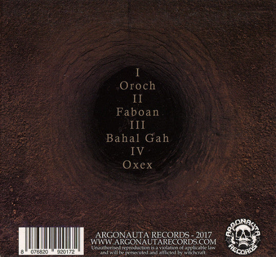 Album cover with text 'I Oroch, II Faboan, III Bahal Gah, IV Oxex' on a textured brown background, featuring Argonauta Records branding.