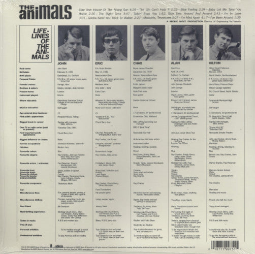 The album includes several R&B standards, written by the likes of Chuck Berry, Fats Domino and John Lee Hooker, as well as the number one single "House of the Rising Sun", here presented in its truncated-for-radio form (it would be restored to full length on the February 1966 compilation The Best of the Animals, and later CD and digital reissues of The Animals would feature the full-length recording).